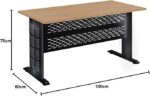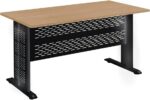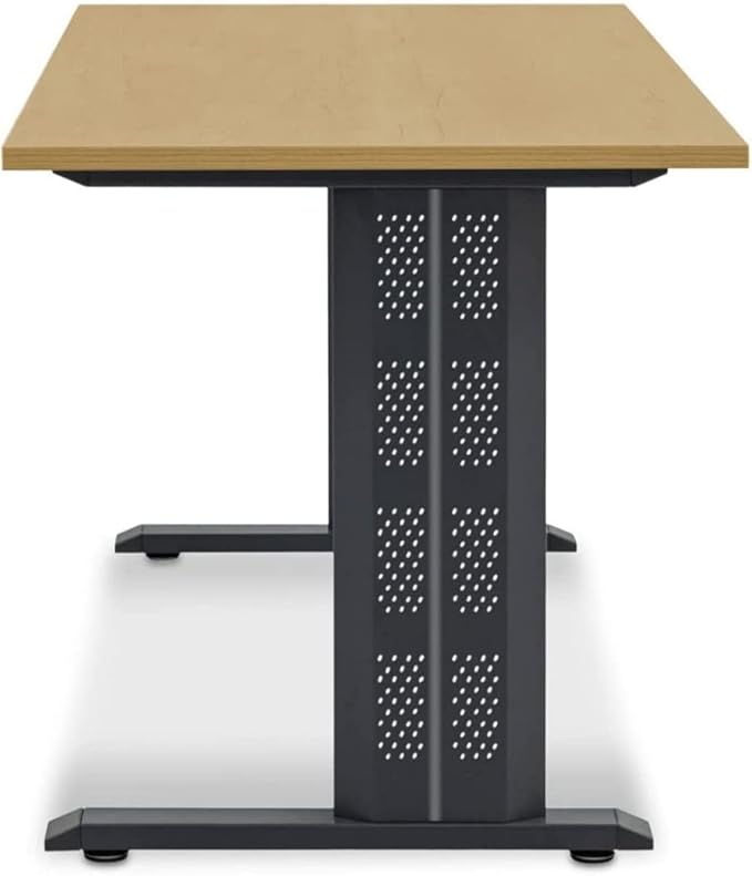 18mm Spanish MDF Beige Wood Disc Desk with Wide Black Metal Chassis Electrostatic Coating Rust and Moisture Resistant Easy Assembly.