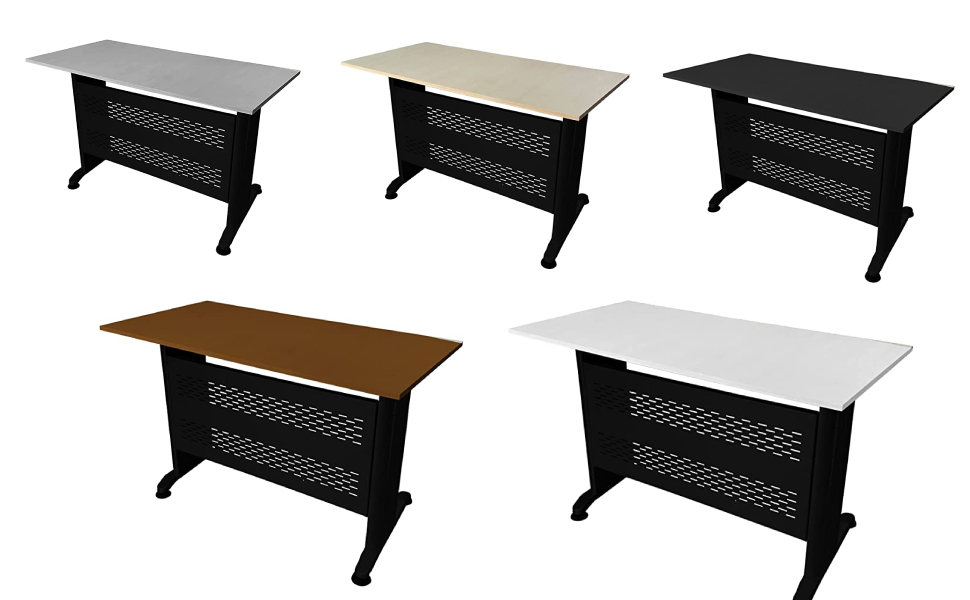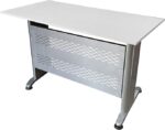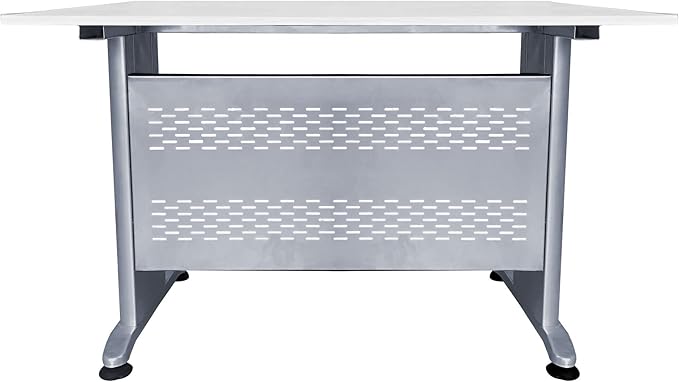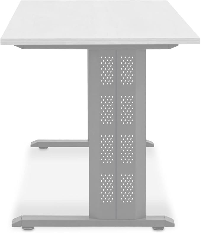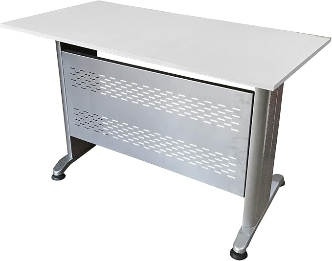 A modern and robust desk that combines the elegance of a white wooden surface with the durability of a metal chassis. Ideal for employees and managers, offering top quality and endurance. Ensure a contemporary and efficient setup for your workspace.”