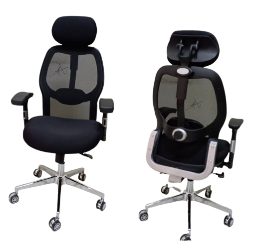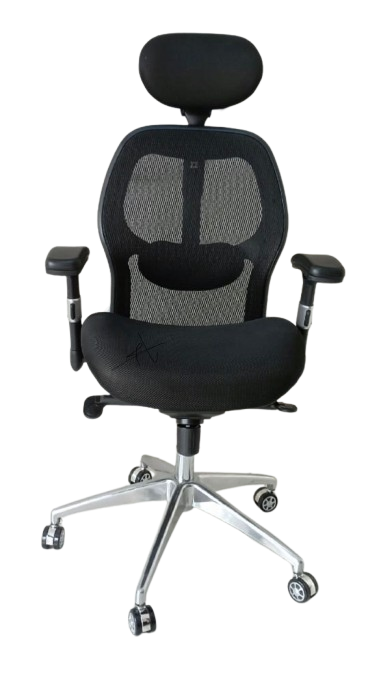 This chair elevates the sitting experience into a science. It features a fully articulated design, including a Height-Adjustable Headrest and Multi-Dimensional Armrests that move vertically, horizontally, and pivotally, allowing you to fine-tune your posture to an exact science. The high-tension, contour-molded mesh back provides responsive dynamic support and superior ventilation. The base is crafted from a durable Polished Aluminum Alloy, ensuring stability and a sophisticated finish.